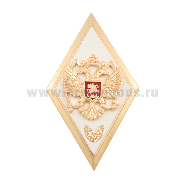 Значок мет. Ромб ВА ГШ ВС обр. 2007 г. с отличием (белый с золотым кантом, с ветвями) гор.эм.