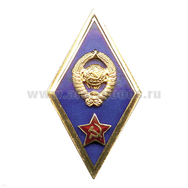 Значок мет. Ромб Военное училище СССР 50-х гг (син. со звездой) гор. эм.
