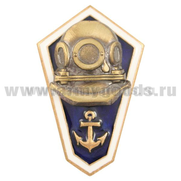 Значок мет. Гробик синий с якорем и накладкой - водолазный шлем