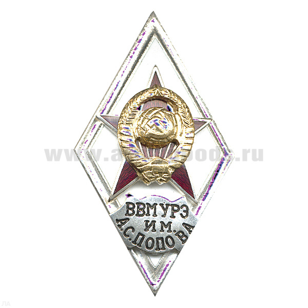 Значок мет. ВВМУРЭ им. А.С. Попова (ромб СССР) гор.эм.