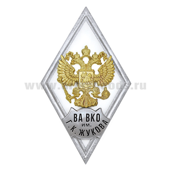 Значок мет. ВА ВКО им Г.К. Жукова (ромб РФ белый, орел без щитка) гор.эм.