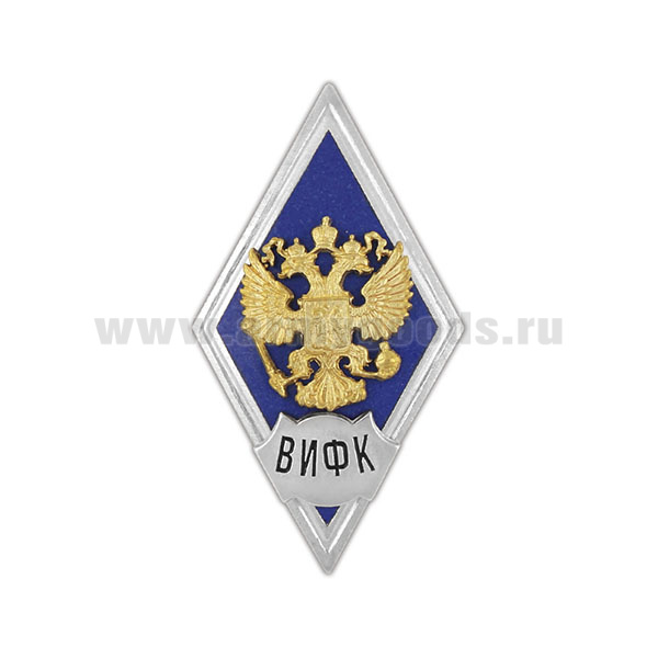 Значок мет. ВИФК (ромб РФ синий, орел без щитка) гор.эм.
