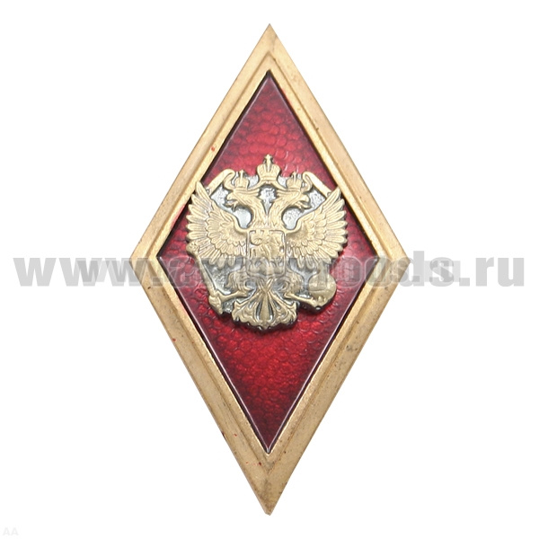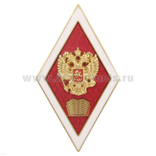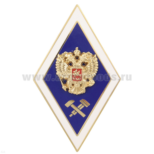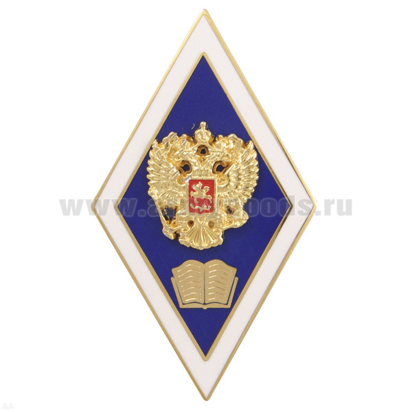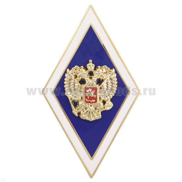 Значок мет. Ромб Высшее образование синий с белым кантом (с накладным орлом РФ) в коробочке, гор. эм. (на заколке)