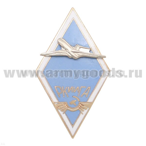 Значок мет. РКИИГА (ромб) голубой фон, белый кант (гор.эм.)