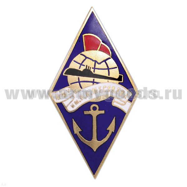Значок мет. ВМА им. Кирова СФПП (ромб водолазное училище) без якоря с синим кантом гор. эм.