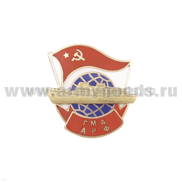 Значок мет. ГМА АРФ (серия Морские учебные заведения (с глобусом, советским флагом и накладным кораблем, гор. эм.)