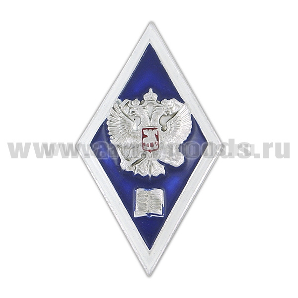 Значок мет. Ромб (алюм.) высшее гуманитарное образование (син.) (серебряные элементы)