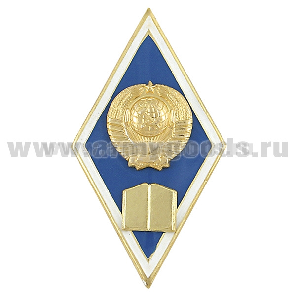 Значок мет. Ромб Высшее гуманитарное образование (с накладной книгой и гербом СССР) латунь, хол.эм