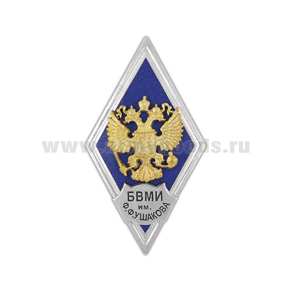Значок мет. БВМИ им. Ф.Ф. Ушакова (ромб РФ, орел без щитка) гор.эм.