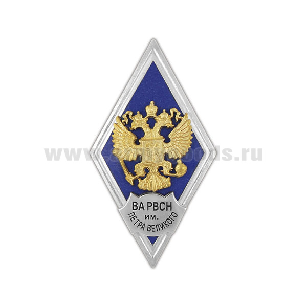 Значок мет. ВА РВСН им. Петра Великого (ромб РФ, орел без щитка) гор.эм.
