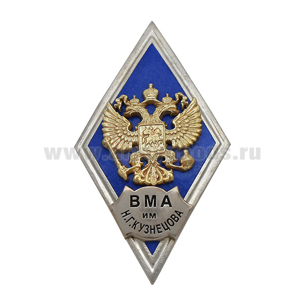 Значок мет. ВМА им. Н.Г. Кузнецова (ромб РФ синий, орел без щитка) гор.эм.