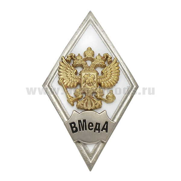 Значок мет. ВМедА (ромб РФ белый, орел без щитка) гор.эм.