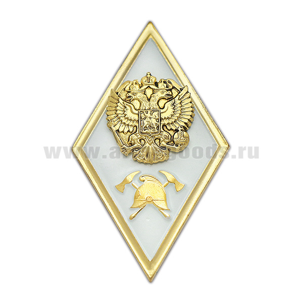 Значок мет. Ромб Высшее образование МЧС РФ (бакалавриат) (латунь, хол.эм. с накладкой)