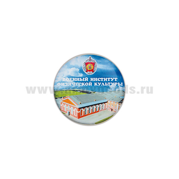 Значок мет. Военный институт физической культуры (кругл, изображ. института, смола, на пимсе)