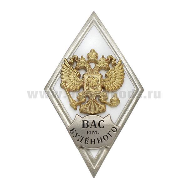 Значок мет. ВАС им. Буденного (ромб РФ белый, орел без щитка) гор.эм.