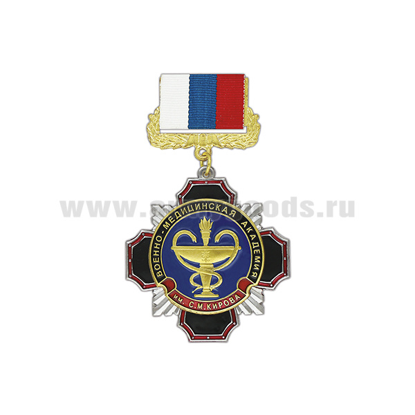 Медаль Стальной черн. крест Военно-медицинская академия им. С.М. Кирова (на планке - лента РФ)