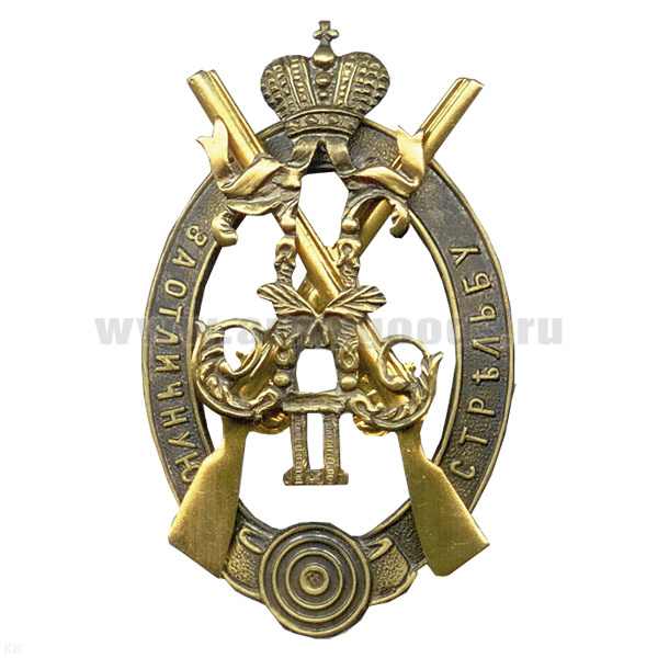 Значок мет. За отличную стрельбу (с вензелем Николая II) зол.