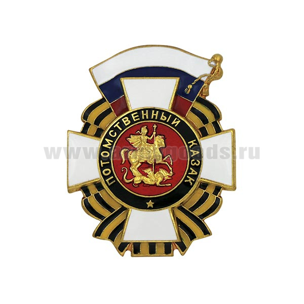 Значок мет. Потомственный казак (с накладкой)