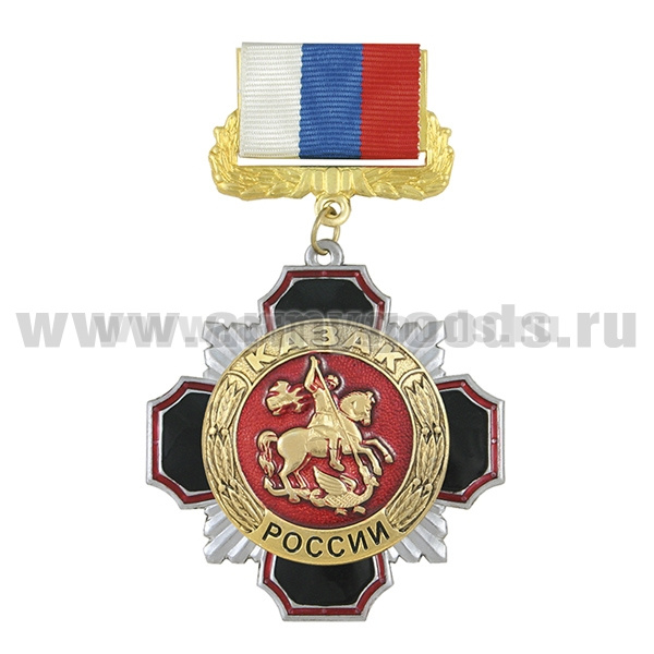 Медаль Стальной черн. крест с красн. кантом Казак России (на планке - лента РФ)