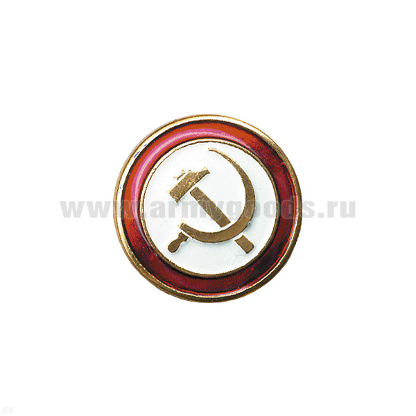 Значок мет. Серп и молот в круге на белом фоне с красным кантом (лат.)