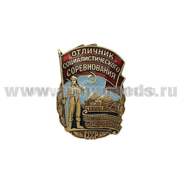 Значок мет. Отличник социалистического соревнования золотоплатиновой промышленности СССР