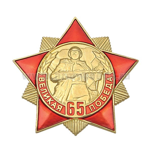 Значок мет. 65 лет Великой победе (красная звезда с лучами)