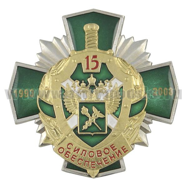 Значок мет. 15 лет силовому обеспечению 1993-2008 (ФТС России) зел. крест с накл., заливка смолой