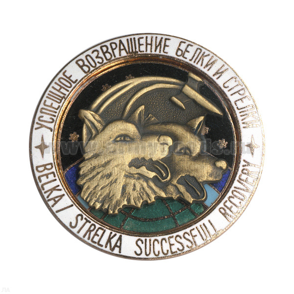 Значок мет. Успешное возвращение Белки и Стрелки (серия Космос) гор. эм.