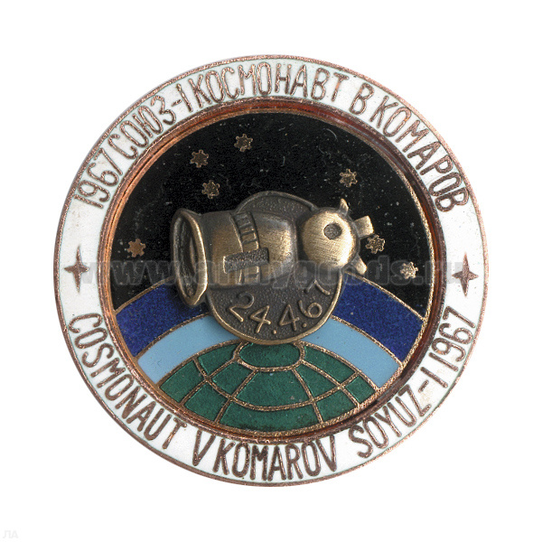 Значок мет. Союз-1 космонавт В. Комаров (серия Космос) гор. эм.