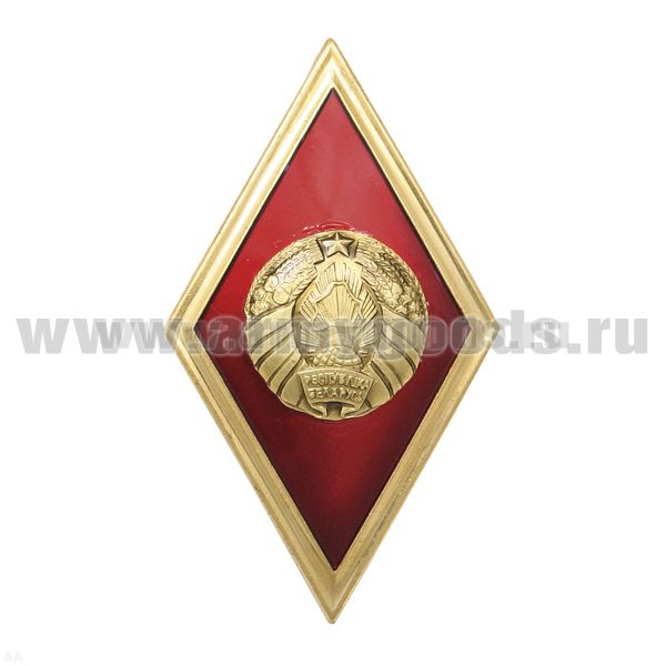 Значок мет. Ромб РБ Высшее образование красный с золотым кантом (латунь, хол.эм. с накладным гербом РБ)