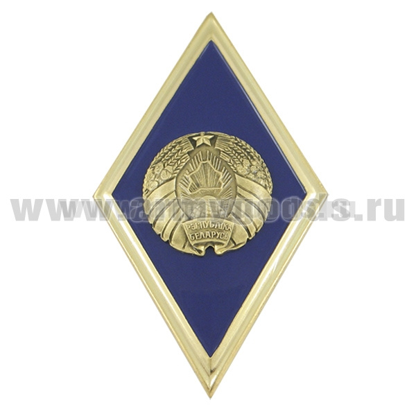 Значок мет. Ромб РБ Высшее образование синий с золотым кантом (латунь, хол.эм. с накладным гербом РБ)