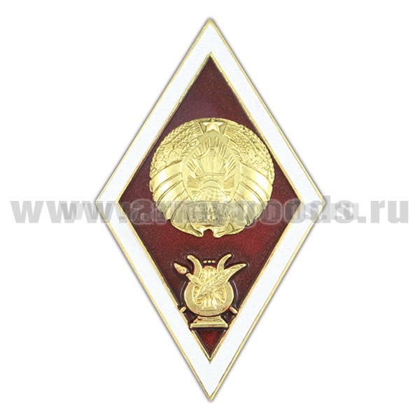 Значок мет. Ромб РБ Высшее образование искусство и культура (с лирой) (латунь, хол.эм. с накладкой)