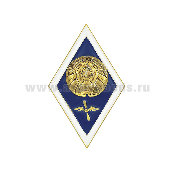 Значок мет. Ромб РБ Высшее авиационно-техническое образование (латунь, хол.эм. с накладкой) эконом