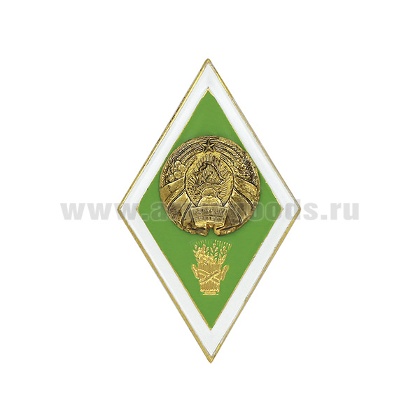 Значок мет. Ромб РБ Высшее сельскохозяйственное образование (латунь, хол.эм. с накладкой) эконом