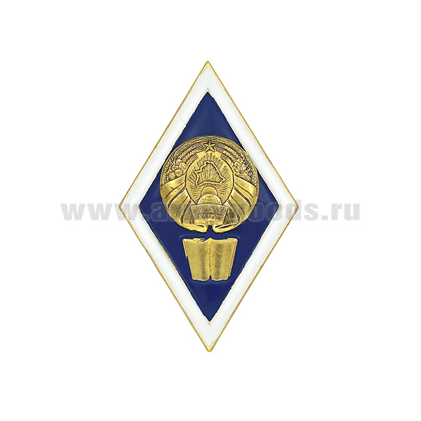 Значок мет. Ромб РБ Высшее гуманитарное образование (латунь, хол.эм. с накладкой) эконом