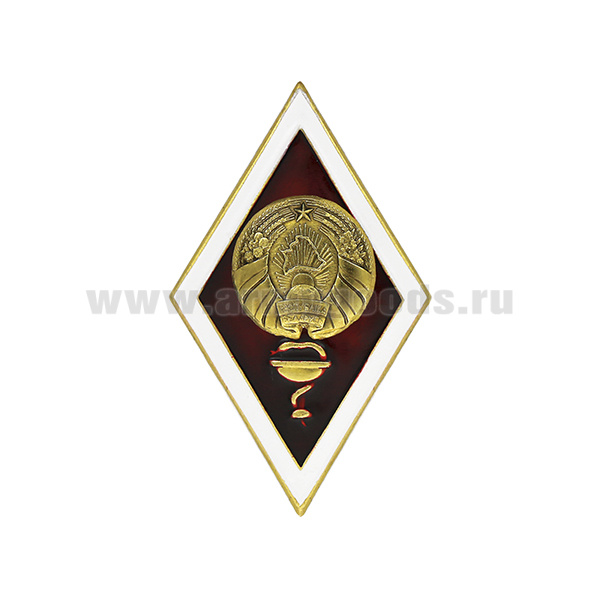 Значок мет. Ромб РБ Высшее медицинское образование (латунь, хол.эм. с накладкой) эконом