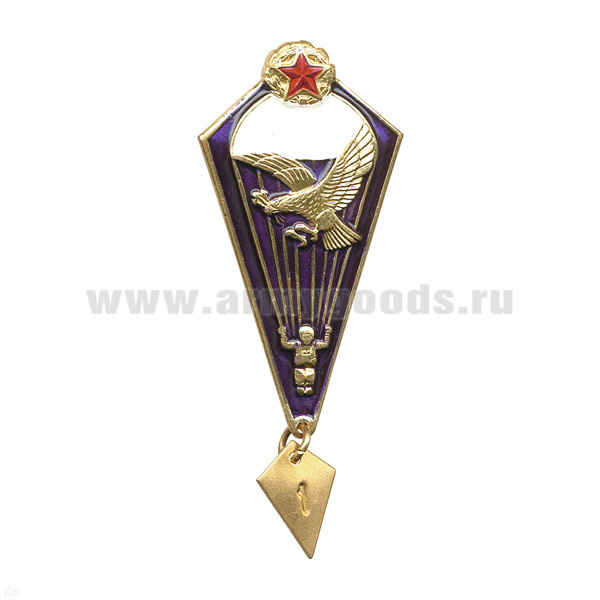 Значок мет. Орел ВДВ (с парашютом и стрелами) на пимсе (серебро)