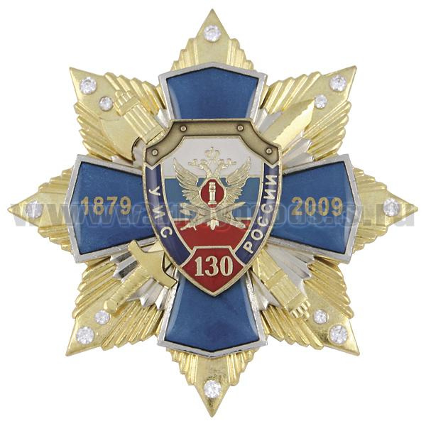Значок мет. 130 лет УИС России 1879-2009 (син. крест с накл., на звезде с фианитами)