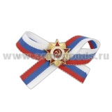 Значок мет. Миниатюра ордена отечественной войны на ленте триколор РФ (d значка 1.5 см)