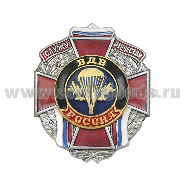 Значок мет. Служу отечеству ВДВ (красн. крест)