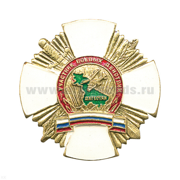Значок мет. Участник боевых действий в Дагестане (белый крест)
