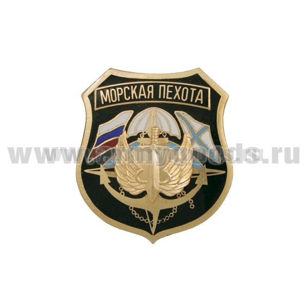 Значок мет. Морская пехота (щит черный с накладным мечом и крыльями) гор.эм.