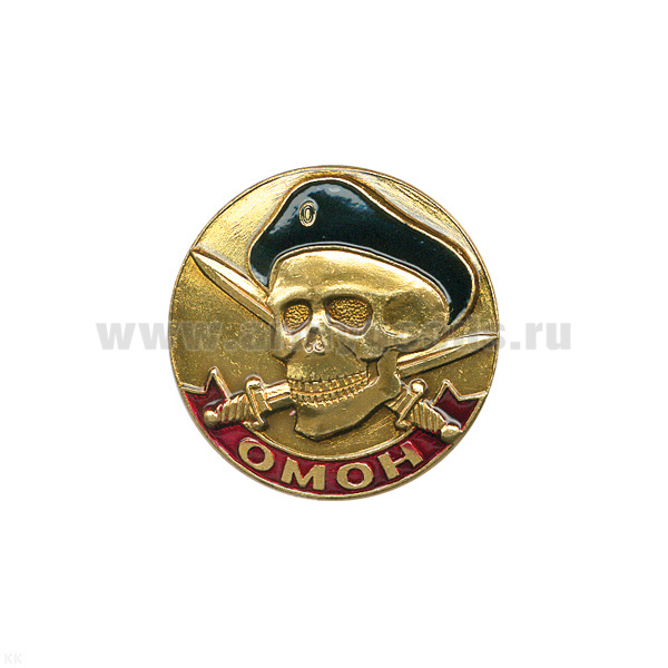 Значок мет. ОМОН (череп в черн. берете) лат.