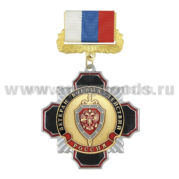 Медаль Стальной черн. крест с красн. кантом Ветеран боевых действий (щит и меч)