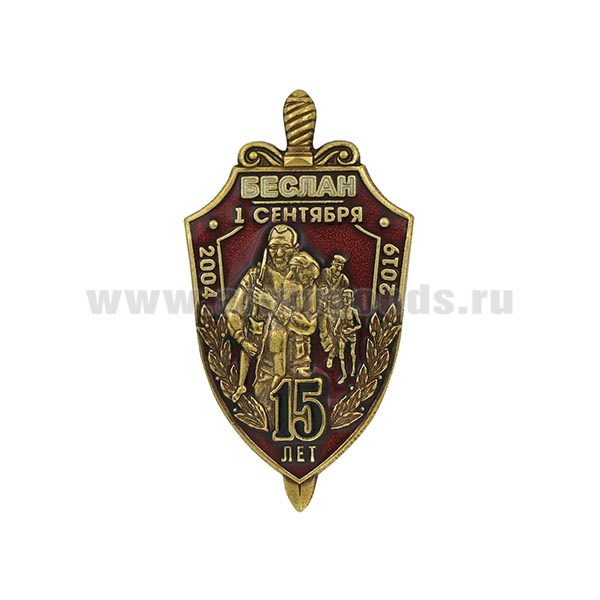 Значок мет. Беслан 15 лет (2004-2019) щит и меч