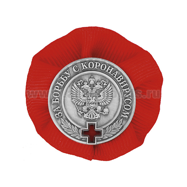Значок мет. За борьбу с коронавирусом (с красной лентой) на двух пимсах