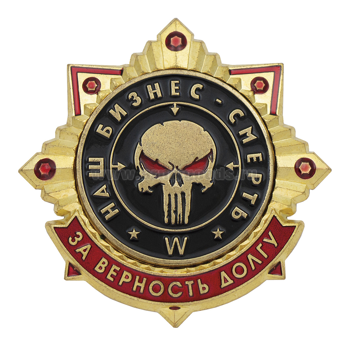 Значок мет. W Наш бизнес - смерть. За верность долгу