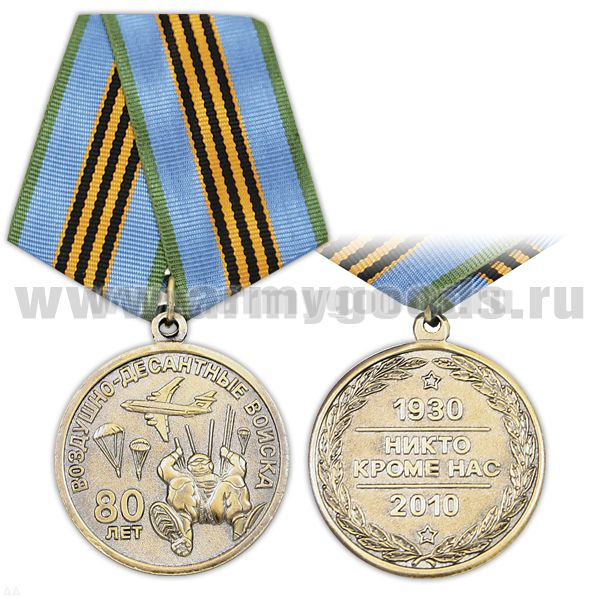 Медаль 80 лет ВДВ 1930-2010 (никто, кроме нас) Десантник на стропах (крупно)
