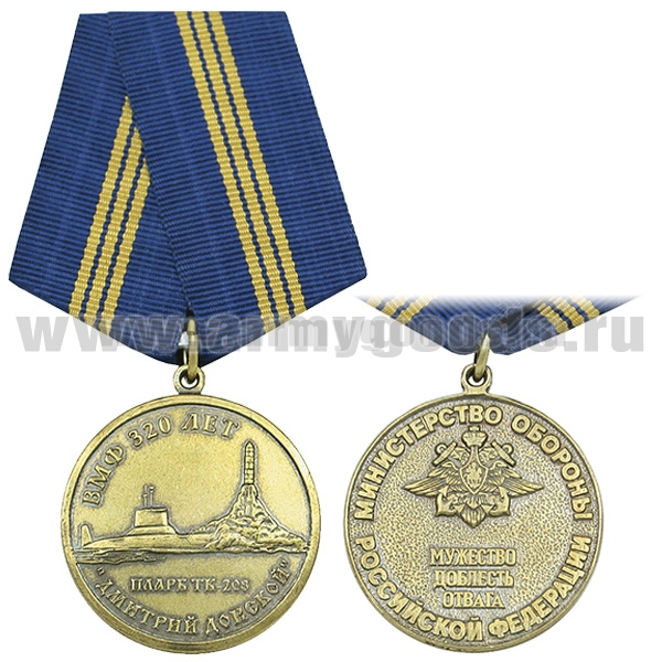 Медаль 320 лет ВМФ ПЛАРБ ТК-208 "Дмитрий Донской" (МО РФ) Мужество Доблесть Отвага