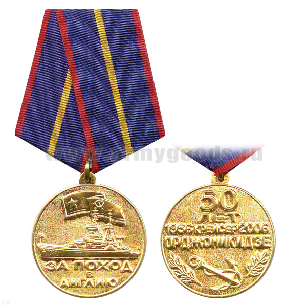 Медаль За поход в Англию (50 лет 1956-2006 Крейсер Орджоникидзе) зол.